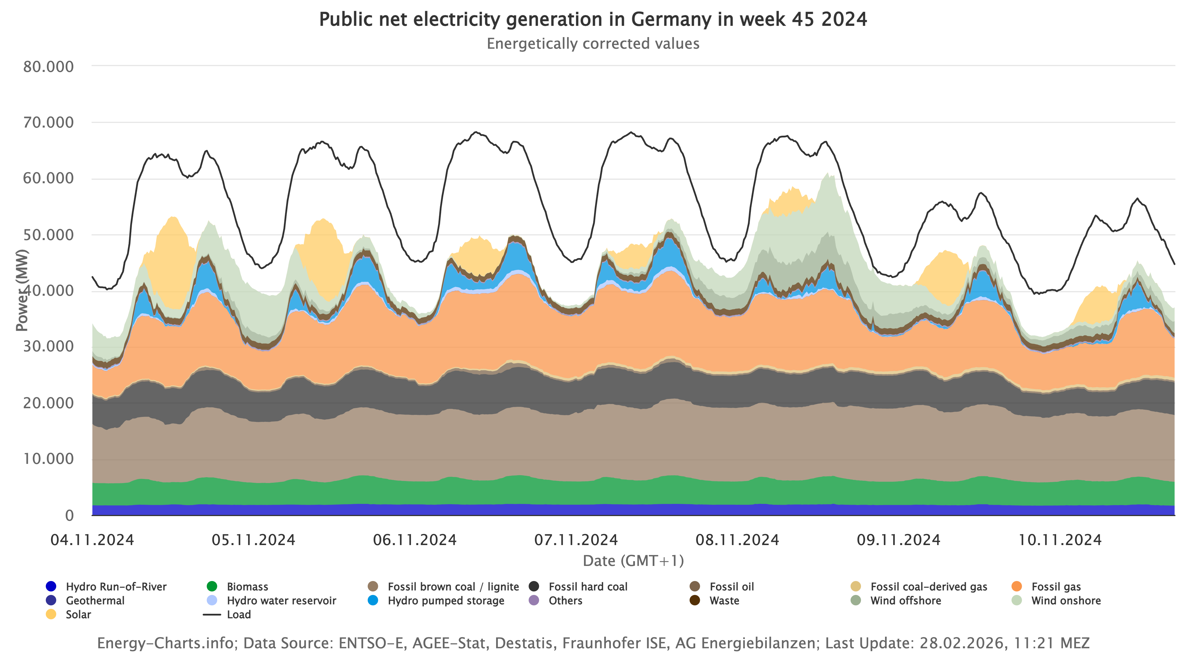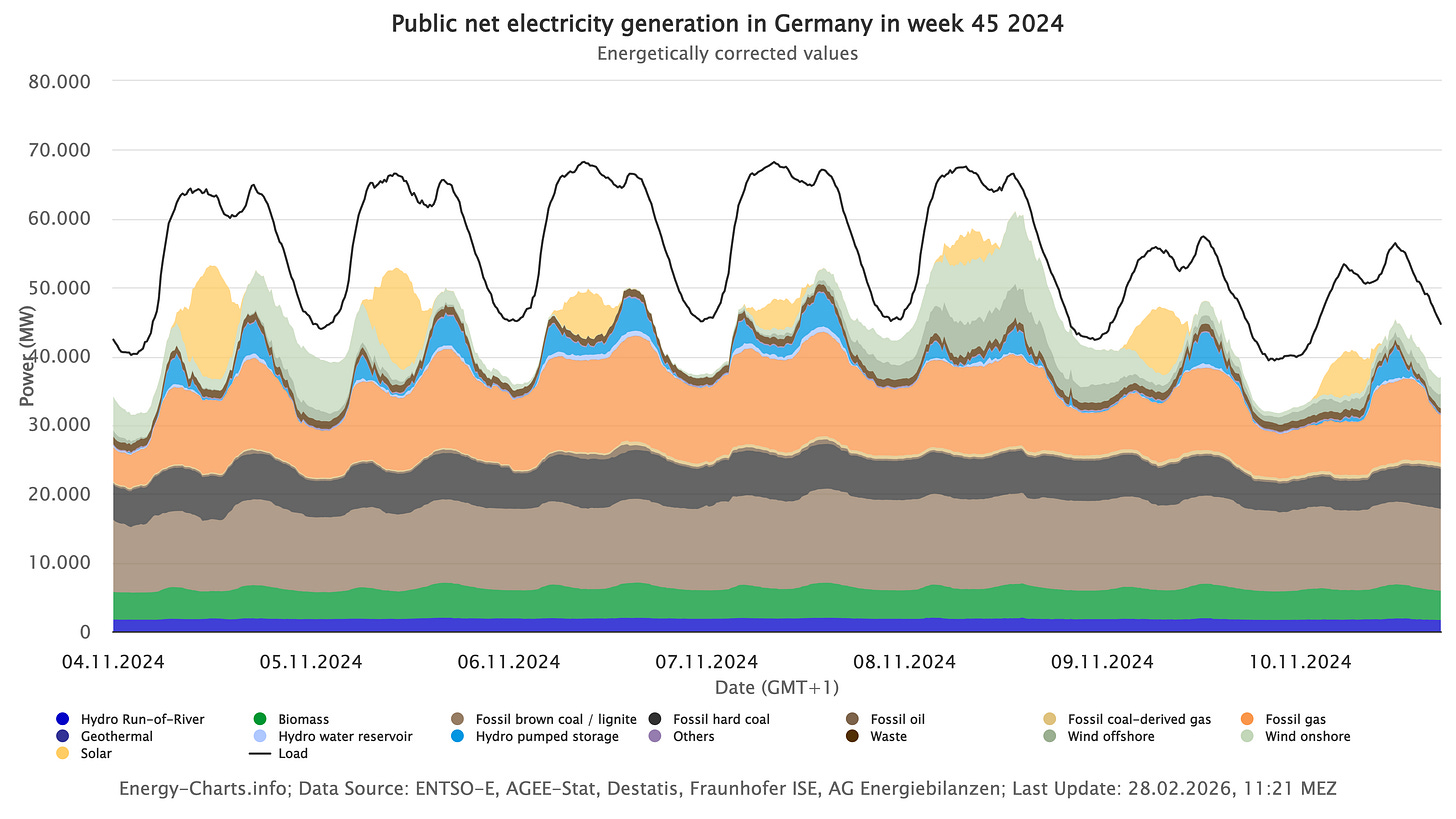 In other words, less than 5% of installed capacity. That’s a 16 GW hole. Filling it drew massively from Germany’s gas reserves: in early November they stood at 98% full, by mid-December they had dropped to 85%. Coal and oil generation had to be ramped up along with whatever neighboring countries could spare.