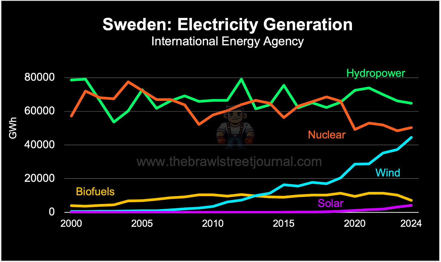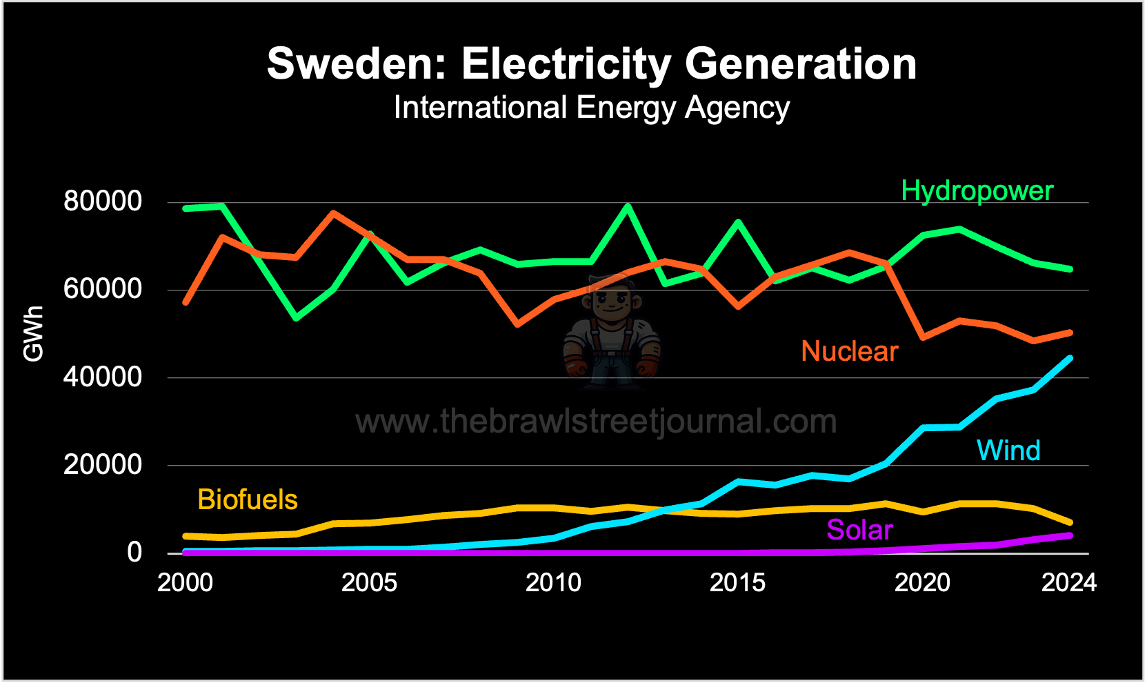While other European member states have spent that same period systematically dismantling dispatchable capacity and replacing it with weather-dependent generation, two thirds of Sweden’s electricity comes from hydropower and nuclear. In a continent increasingly running on wind and sun, Sweden is one of the few places that’s operating non-fossil baseload at scale.