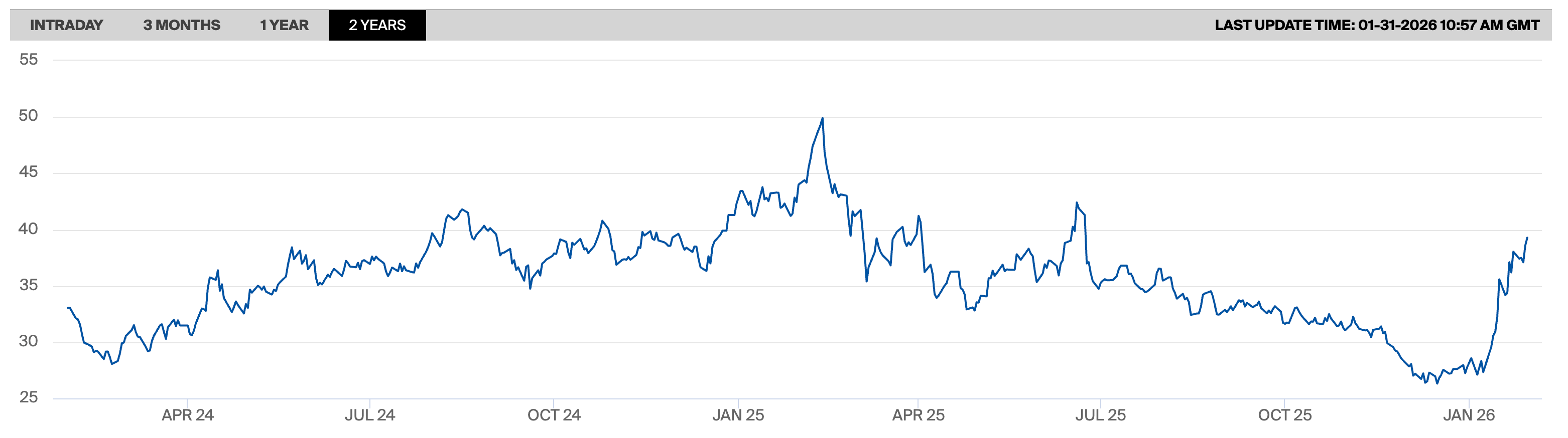 Prices at the Dutch TTF—the benchmark for landed LNG in Europe—have mostly fluctuated between €30 and €40 per MWh over the past two years, with brief periods near €45–50 and lows around €27–28. At those levels, gas exploration in Europe has been a poor business case.