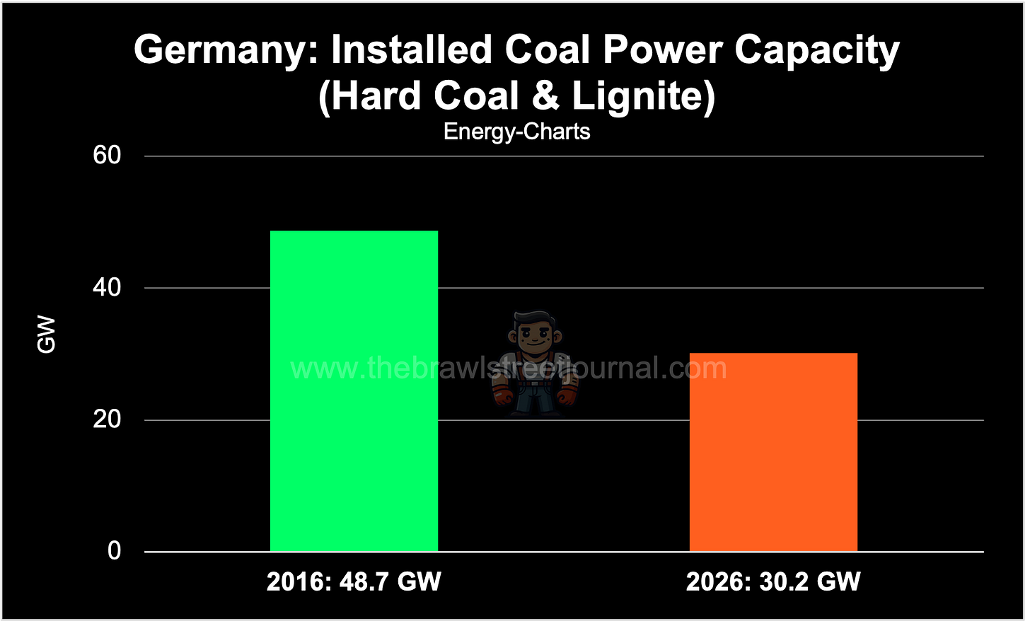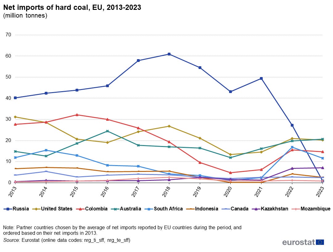 From a “strategic autonomy” point of view, coal could, in theory, reduce Germany’s dependence on LNG to a meaningful extent. By my math, using data from the Statistical Review of World Energy, replacing gas-fired generation with coal could cut Germany’s gas demand by roughly 15–20% of annual consumption.