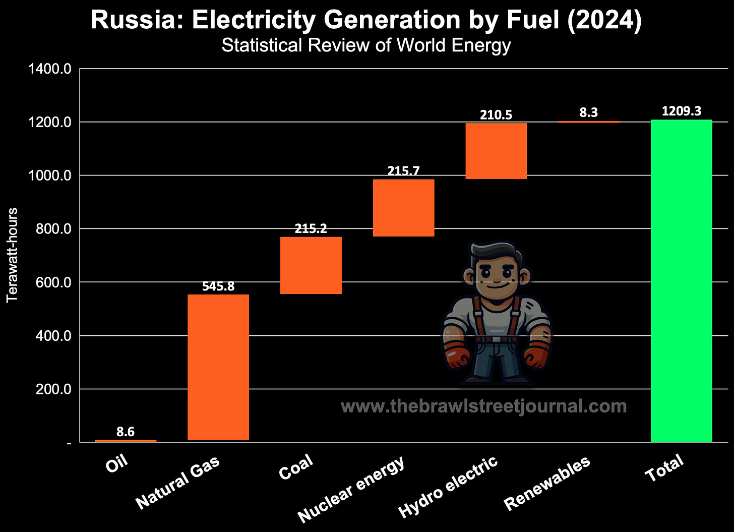As a result, Russia produced around 17 million tons of ammonia in 2024, keeping it firmly among the world’s top three suppliers. And the surplus gas doesn’t just feed chemical plants. It fuels a big slice of Russia’s electricity grid, keeping both civilian industry and the military manufacturing humming. And at prices Europe can only dream of.
